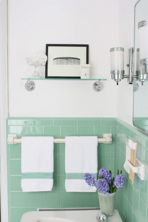 Installing new colored tile in a bathroom isn’t something you see a lot of—it’s safer to go neutral for sure—but looking at these bathrooms makes color seem like a pretty good option: