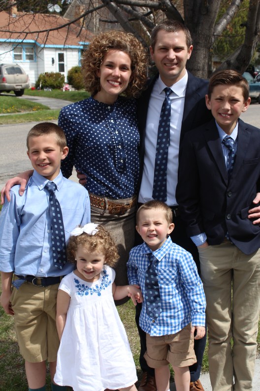My ties aren’t perfect, but they’re still fun. My only suggestion is to double-check the length of the tie on the pattern compared to the length of ties your husband or son likes to wear. I know shorter ties are becoming en vogue, but Lonnie and I are in our mid-30s, so he likes the point of his tie to reach just a smidge past the top of his pants’ waistband. I wish I would have made his a couple inches longer.
