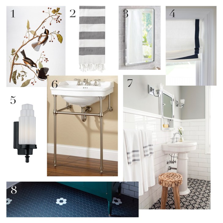 Planning the powder room has been pretty fun, and here’s my inspiration. It should be an accurate representation of what we will end up with since I’ve already purchased most these things. Can’t wait to see it done!