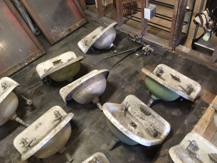 But before being installed in their new homes, the sinks and tubs took a trip to a nearby shop to be reglazed. Here are a few shots: