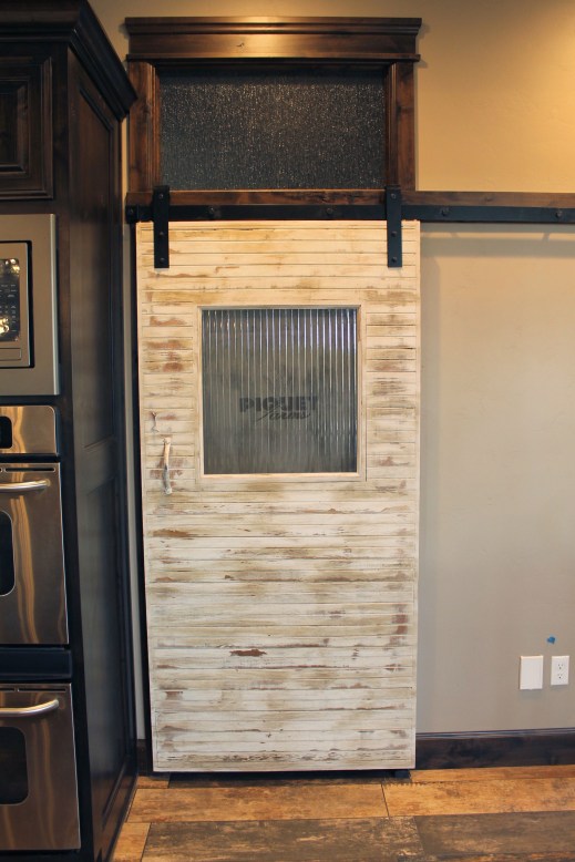 Similarly, on a barn door in the kitchen, the family’s farm logo was etched into the glass.