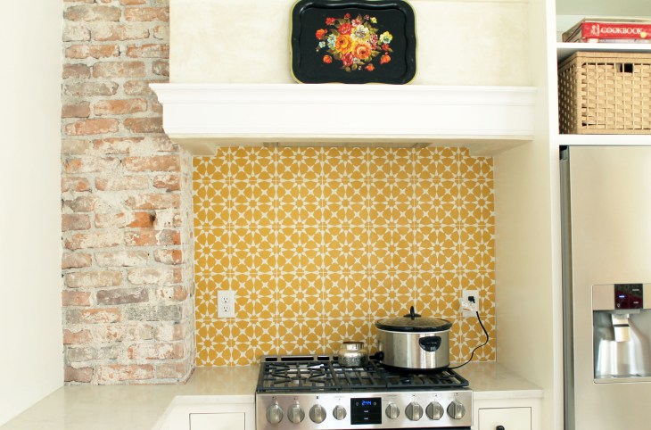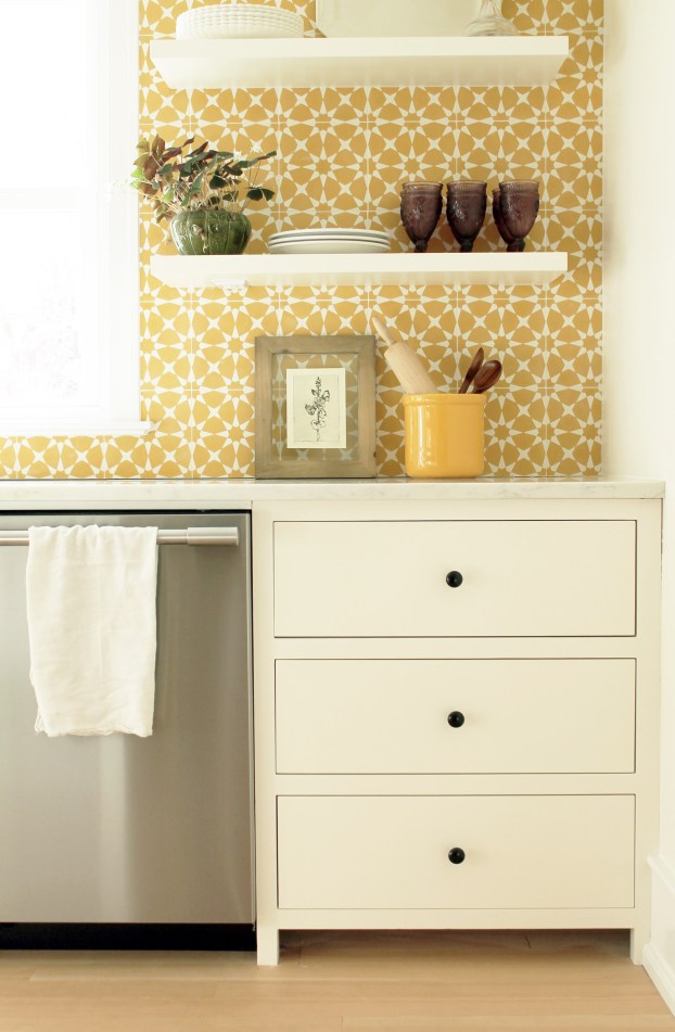 The cement tile is from Cement Tile Shop, and it’s in custom colors (gold and white). The cool thing about Cement Tile Shop is that you don’t pay extra for custom color combos; since they make batches to order, you can get whatever colors you want without an upcharge. I did order samples before placing my order, and I would recommend you do the same. Also, because our order was delayed, the company reduced our bill by 40 percent without me even asking—great customer service.