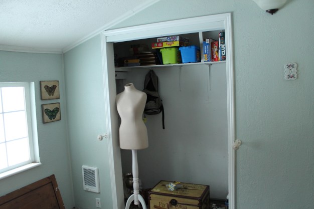 Our toilet room is just past the cabinet; you can see the doorway in this photo.