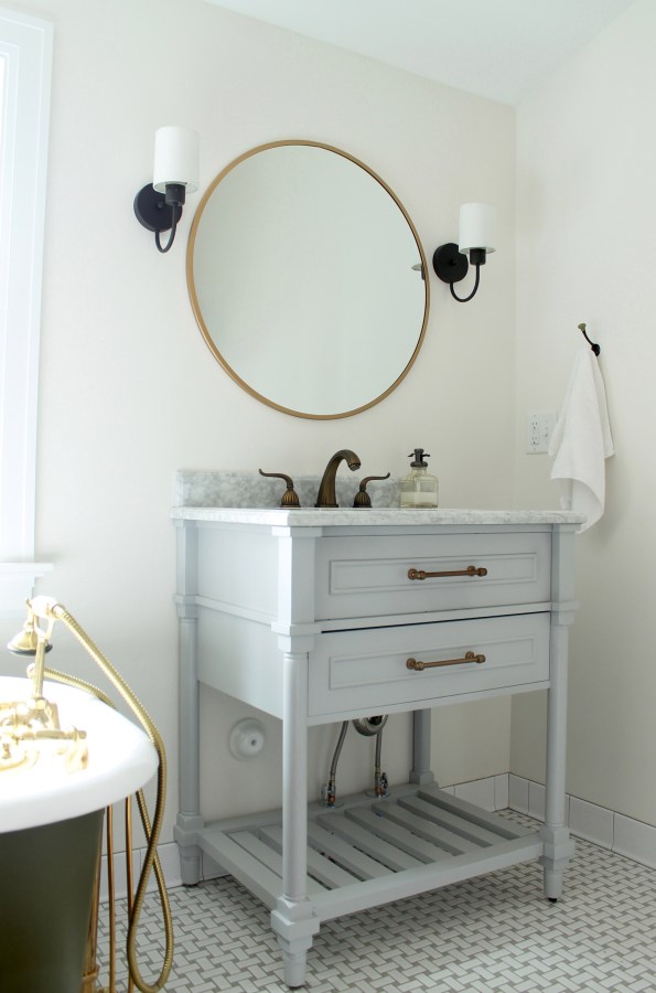 And you probably recognize the pretty round mirrors from Target. We love these—they’re big enough to see yourself well while getting ready, and at less than $50 each, they’re a steal.