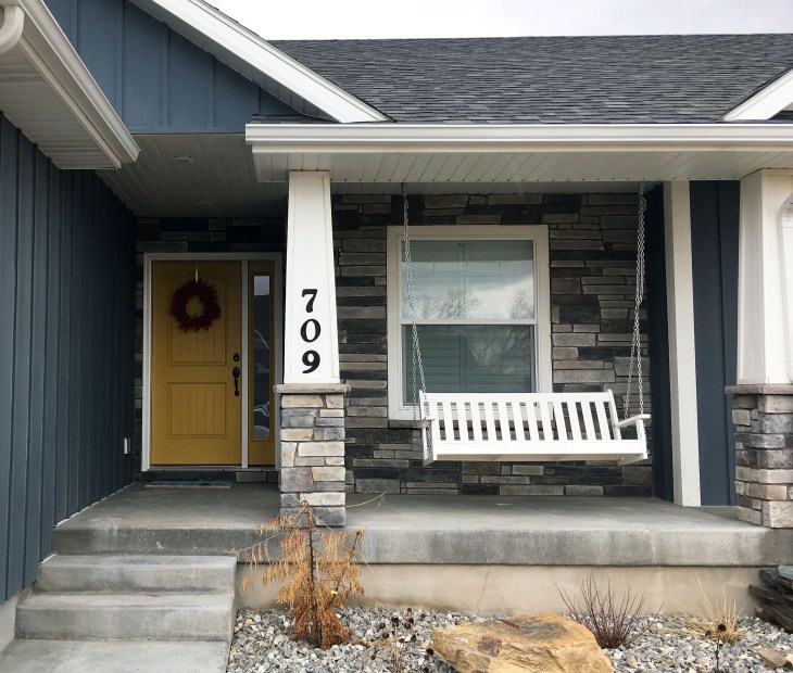 Our front door got plenty of attention on DS’s Instagram post about our house, so I wanted to share some info about the yellow we chose. We discovered this shade during a family reunion in Ogden, Utah, six years ago, where we stayed at a historic home with this lovely lady straight across the street: