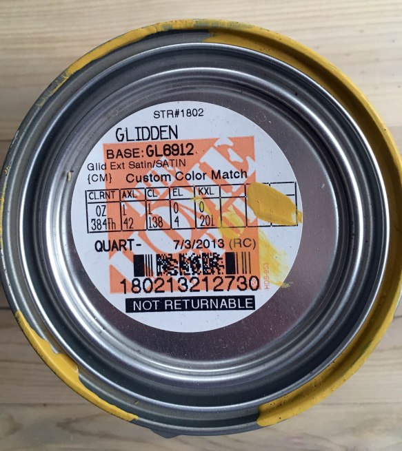 I knocked on the door to ask for the color and got no answer. So I sent my handsome husband over, and the lady answered right away and peeled paint off an old paint can for us to match (#goodlooksgetresults). Yellow can be almost impossible to get right, so seeing this color on a real-life house helped us nail the shade the first go ‘round.