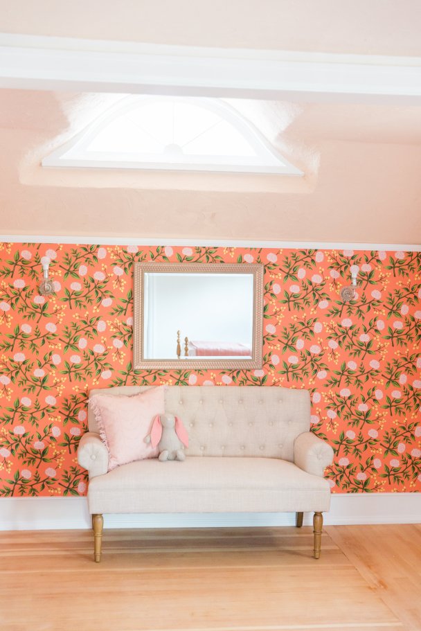 Even my daughter’s room, with its coral floral wallpaper, goes with the rest of the house because olive, yellow, and warm white are in there too—colors straight from my palette.