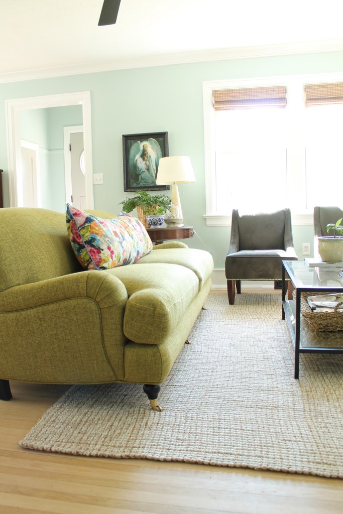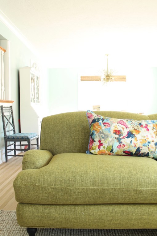 A couple weeks ago, I extolled the virtues of having a single lumbar pillow on the sofa as a way to minimize stuff in the living room and to freshen things up for spring.