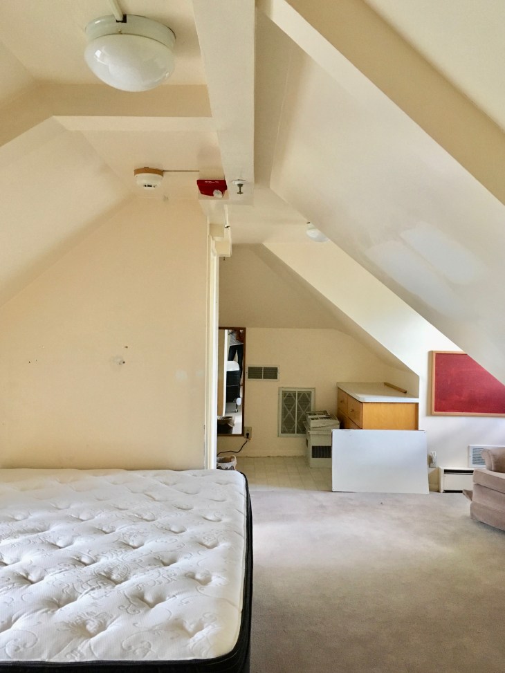 The big turret on the front makes for a cool round bedroom upstairs, and a skinny staircase leads to a third-floor apartment that’s all odd angles and cozy spaces. The house feels straight out of a storybook.