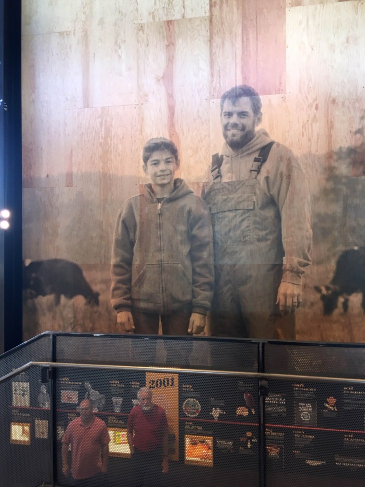 One of the coolest features in the Tillamook Creamery was the oversized digital images printed on huge sheets of plywood. I’d never seen anything like this before—the juxtaposition of huge art with a little rusticity was novel and perfect for a museum about dairy farming. The two men standing below the plywood image give you an idea about the size of the plywood image.