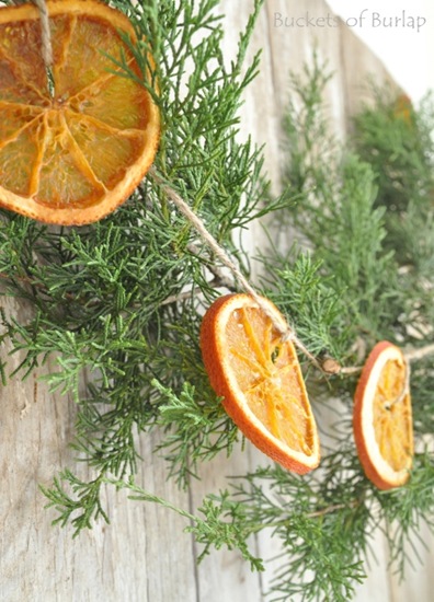 Dried-orange garland. I associate oranges with Christmas, and I’m thinking a garland like this would look rich with my gold tile.