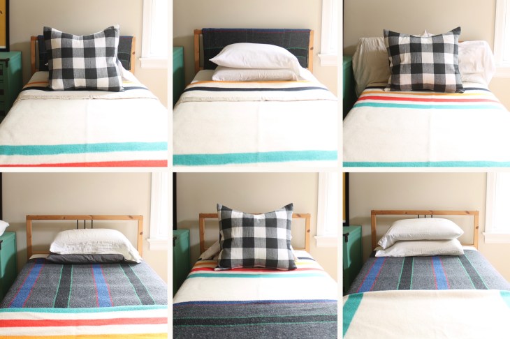 Things are winding down in the boys’ room upstairs, and I’ve spent an inordinate amount of time figuring out how to make their beds. Here are a few of the options: