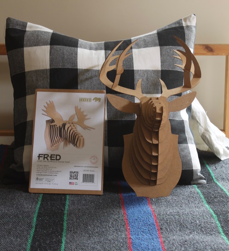 And the cardboard trophy heads came in the mail. They aren’t huge—you can order big ones, but I wanted small—and they come in a package about the size of a sheet of paper: