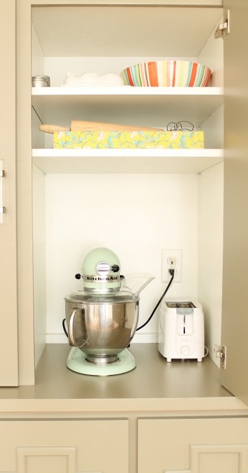 The counter on the pantry. I love my pantry, and there’s plenty of storage. But the counter part of the pantry is chipped already.