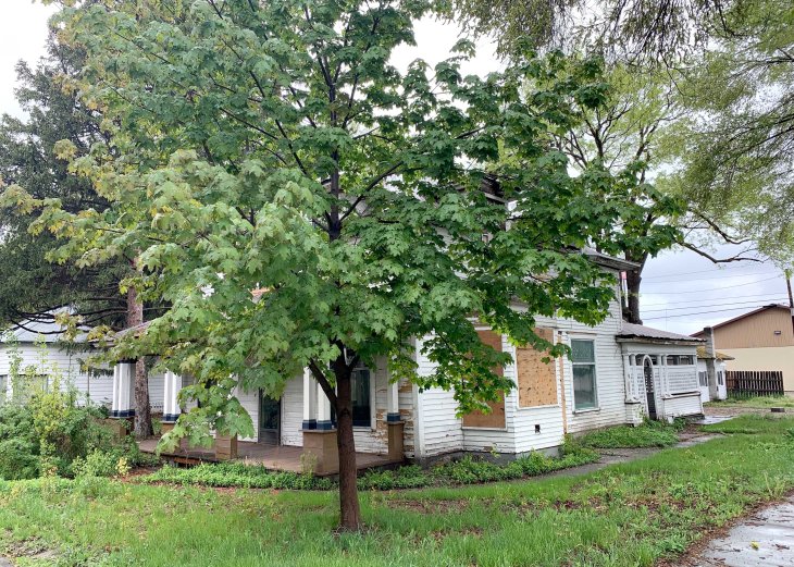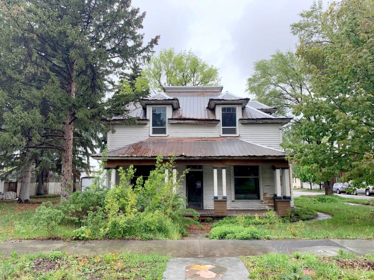 Mansard mini-mansion: This house is in the hands of Melissa Ball, who happens to be a member of the local Historic Preservation Commission. She is getting ready to fix it up, and I can’t wait to see what happens next. Unfortunately, a bitter former-owner stripped the house of many original features, but Melissa told me she’s on the prowl for vintage details that match what was removed. You can see the back of the house in the photo below.