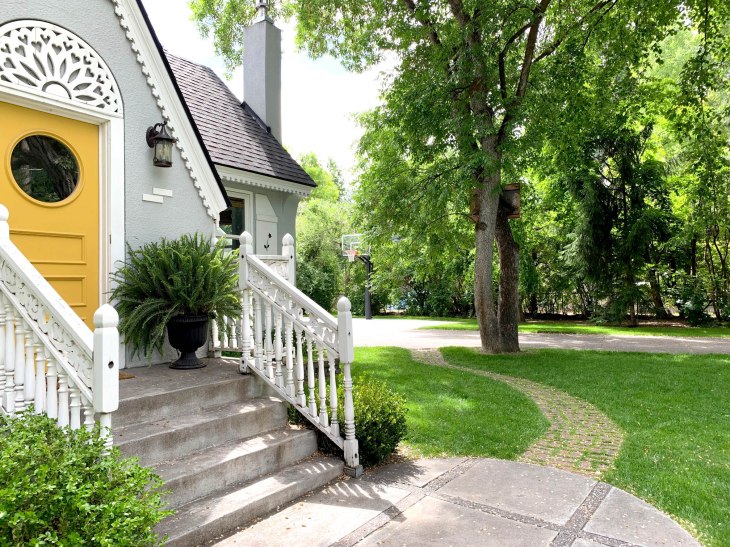 A few years ago we decided to install a walking path from the driveway to the front door, and we considered lots of hardscape options. My very favorite is flagstone, but it was expensive, and we were intimidated by the irregular edges of the stones. My husband is very handsome, so he’s not especially handy. And neither am I.
