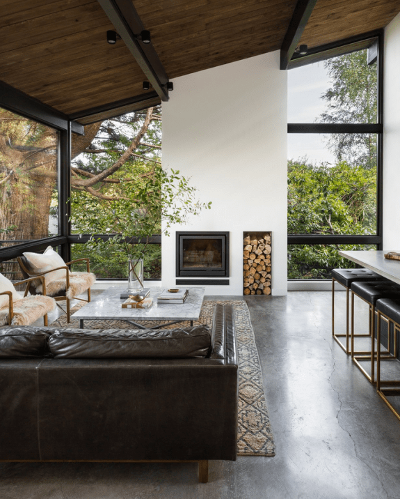I pushed her hard to embrace the architectural integrity of the building, but I also didn’t want it to look like a time capsule—no boomerang-shaped patterns here. So we went with clean lines in the furniture and flooring and organic shapes and textures in the rugs, mirrors, lights, and pillows.