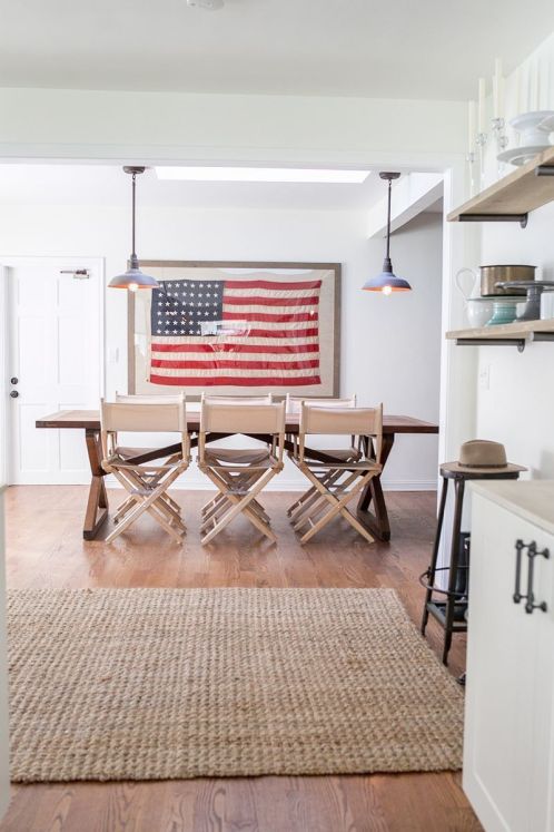 I considered tackling this as a DIY project but decided against it. I’m taking cues from these images, where the backer board is bigger than the flag on all side. I really love how this looks, and it’s ideal for my old flag because it isn’t square anymore.