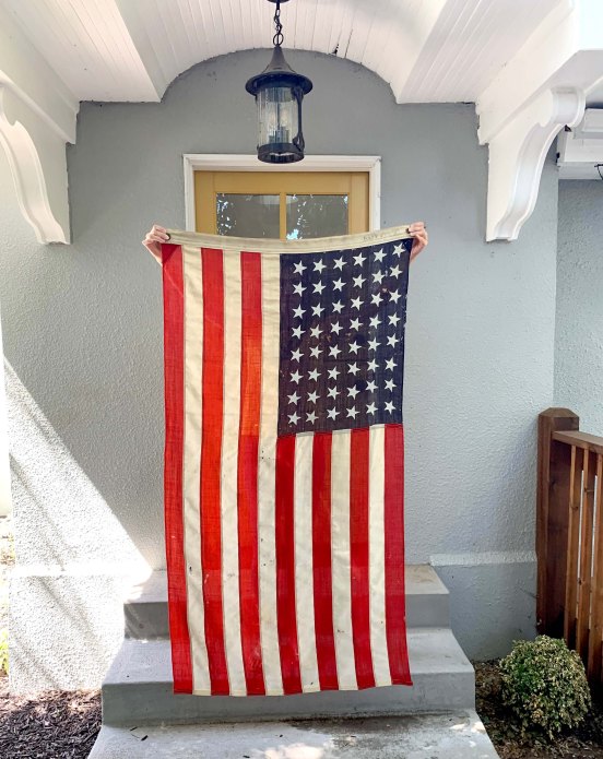For years I searched for a 48-star flag. I didn’t want to spend hundreds of dollars, so the ones I found online weren’t a good option. I kept scouring antique stores and estate sales until I found this: