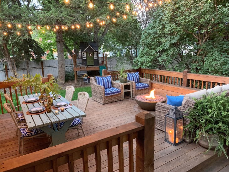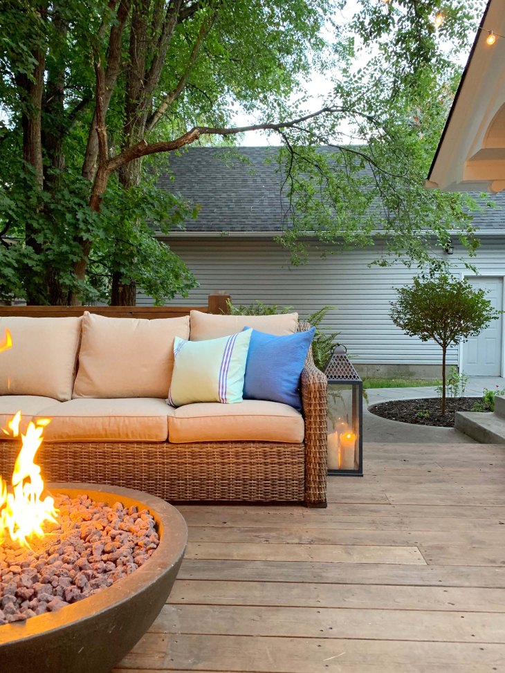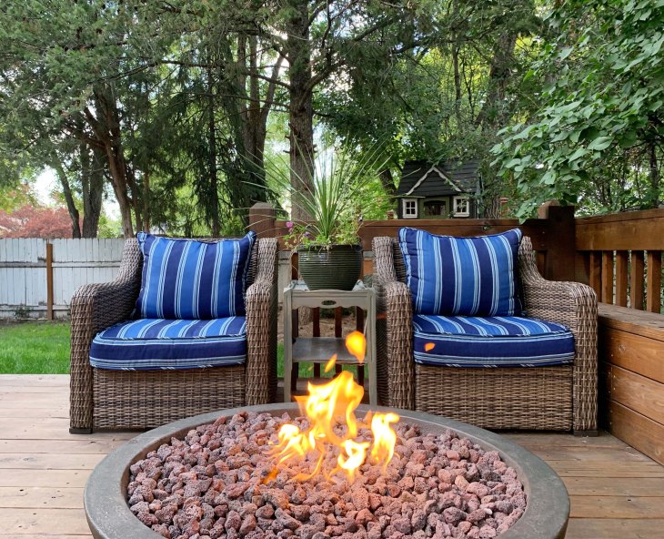 We added the fire pit, which has been fun and produces a surprising amount of heat. It came damaged, but Wayfair was quick to send a replacement, and I sold the guts of the busted one for a few bucks, which was nice. The flame size is adjustable, and the thing runs off propane.